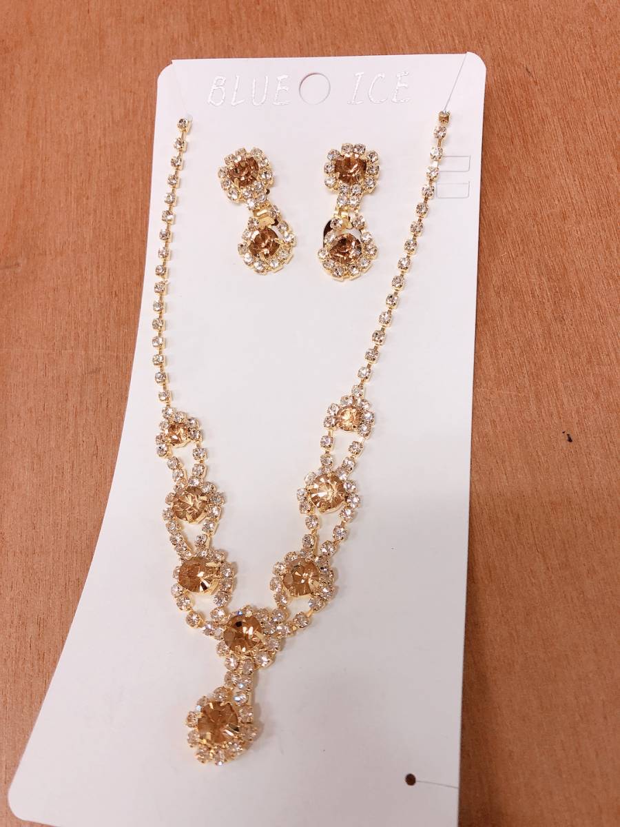 - 新品●送料無料●キラキラ ネックレス&イヤリング ゴールド金具