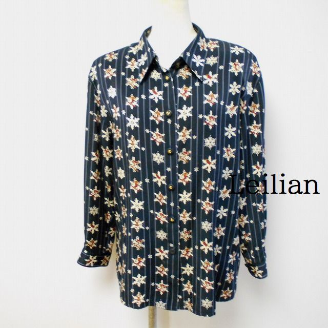 > 729831 Leilian レリアン 紺系柄 長袖 シャツ ブラウス 11