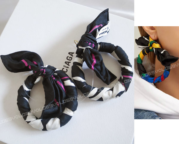 > バレンシアガBALENCIAGA 2019SS デムナ ヴァザリアDEMNAロゴ プリンテッド ツイル シルク スカーフ フープ ピアス イアリング ブラック