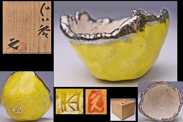 - 高鶴元 ★ 上野焼 ぐい呑 ★ 共箱 共布 ★ 日本とアメリカで活躍される 氏独特の感性が光る独創的な逸品 ★ 酒器 ★ 検 高鶴夏山