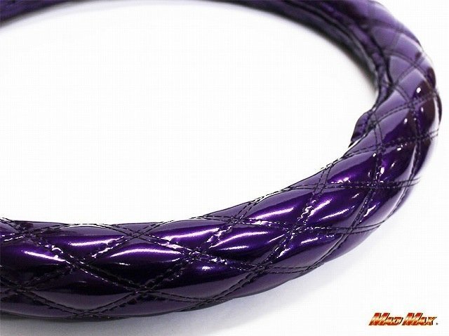 - 【送料800円】トラック用品 国産 エナメル パープル/ブラック ダブルステッチ ハンドルカバー Sサイズ/ステアリング