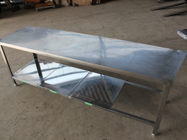 - 中古品 ガス台 変形 1870/1790×500×650 台形 作業機器 業務用 厨房用品 ステンレス台 ベタ棚 収納 ガスコンロ置き 10-36823 76691