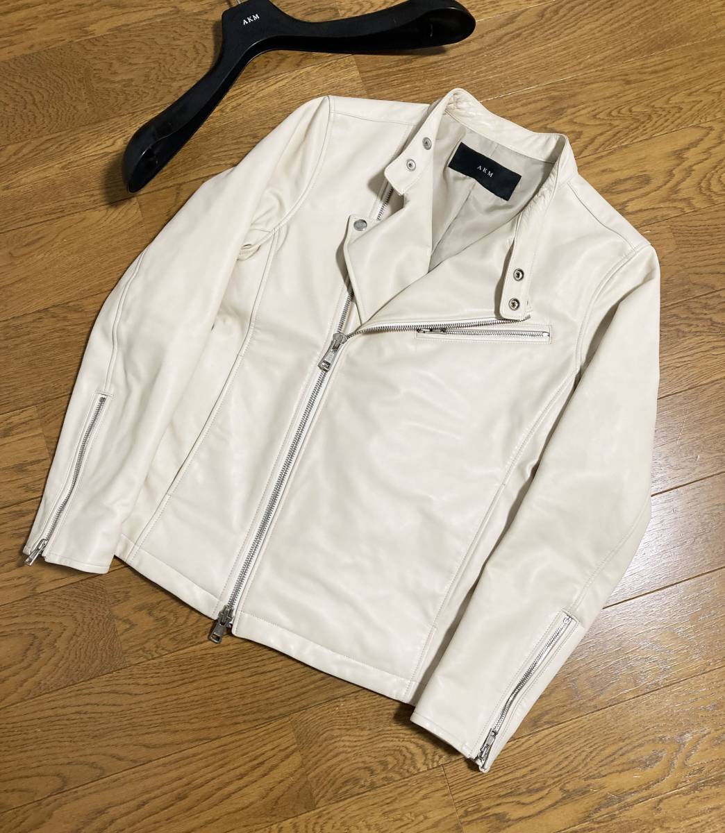 - 美品☆[AKM] 22SS 定297,000 SENA by RIBA SEMI W RIDERS -OFFWHITE- セミダブルライダース レザージャケット S B410 仔羊革 エーケーエム