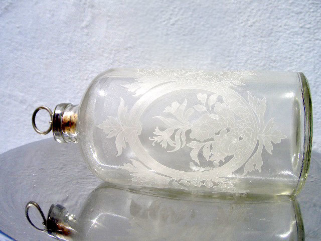 - ●70S 北欧 雰囲気ある花柄 びっしり乱れ咲 雰囲気ある コルク 硝子瓶 危うい不均一 微妙な歪 気泡ガラスがとってもいい♪昭和レトロ