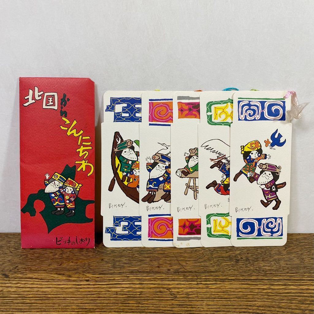 - ビッキのしおり 5枚セット アイヌ 砂澤ビッキ BIKKY 北国からこんにちわ 北海道 しおり 民芸品 工芸品 お土産 昭和レトロ アイヌ文様