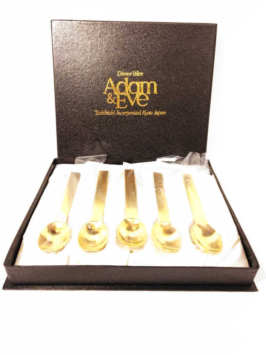 > アダムアンドイブ たち吉 ティースプーン 金色 5本セット 茶器 橘 カトラリー キッチンウェア 在銘 美品 箱付 (検索) 茶道