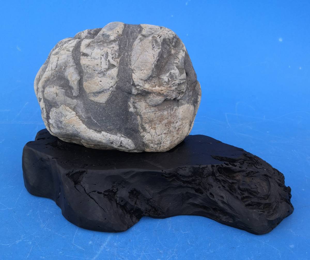 - 木製の台に乗った水石ですが石の種類不明石 無銘の重さ3.33kg