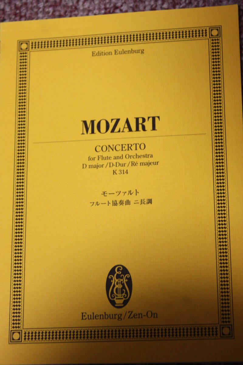 > モーツァルト フルート協奏曲ニ長調(第2番)K 314楽譜オイレンブルクスコア/オーボエ/ホルン/バイオリン/ビオラ/チェロ/コントラバス