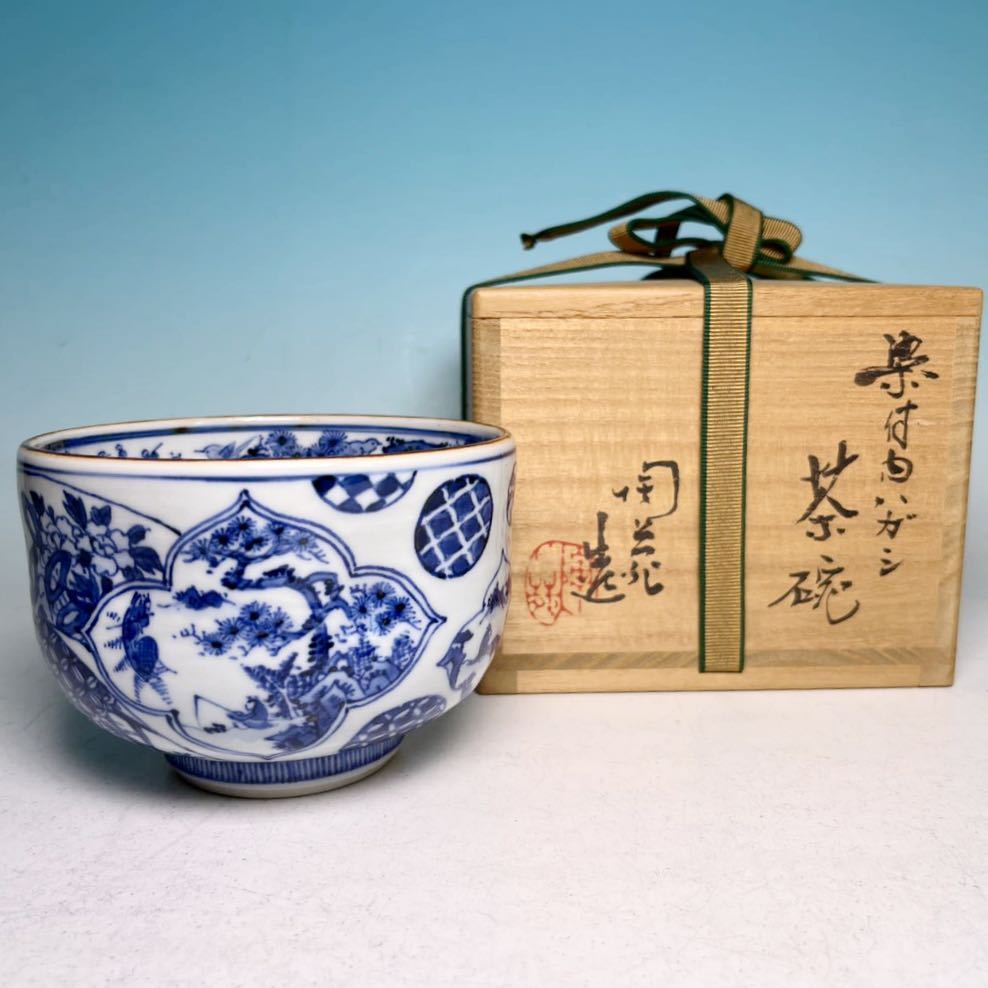 - ☆ 名工 八塔亭二寧 村田陶苑 染付内ハガシ 茶碗(共箱共布)茶道具