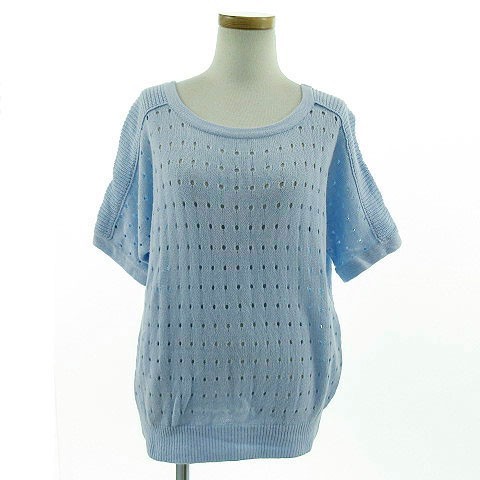 - ビームスハート BEAMS HEART ニット 半袖 パンチング コットン 水色 レディース