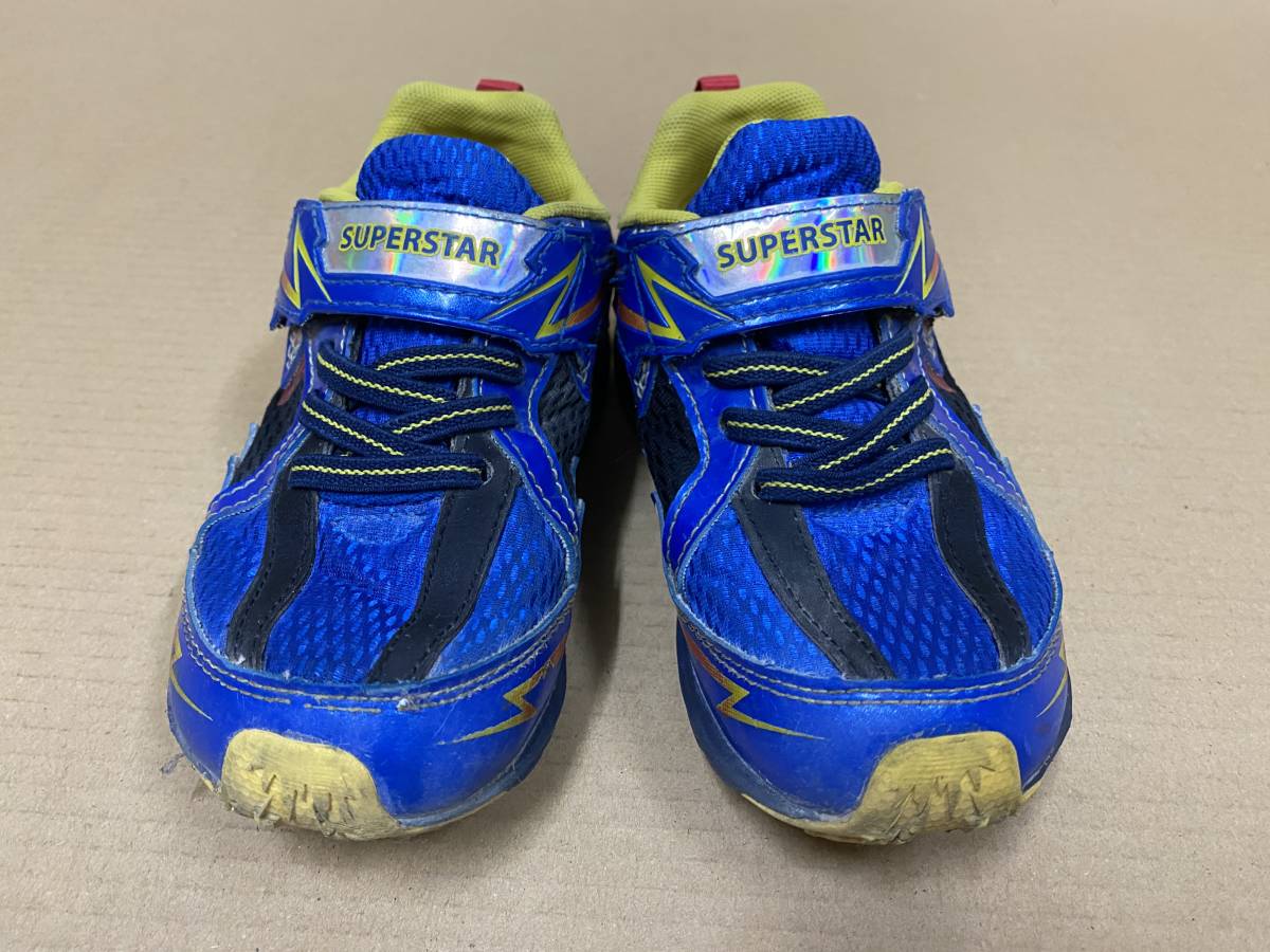 - まだまだ履けそうです SUPER STAR 青 17cm スニーカー キッズ 経年劣化多少有 ヤマト宅急便60サイズ発送 中古品[D-649]