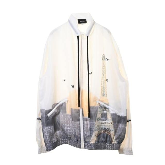 - 美品 3.PARADIS 転写プリント ジップブルゾン 50 ホワイト スリーパラディ KL4CSPQH78
