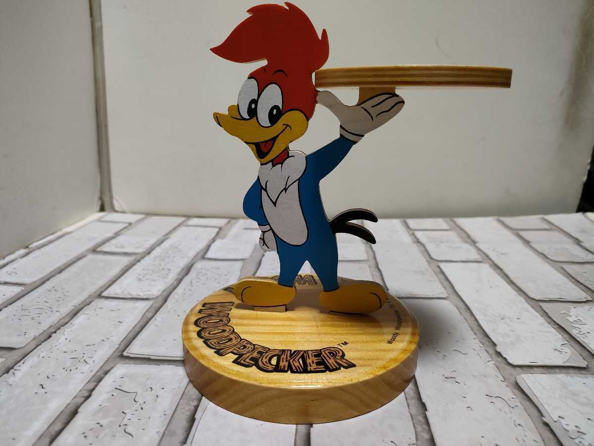 - 珍品。ビンテージレトロ。ウッドペッカー 木製フィギアスタンド 約17センチ