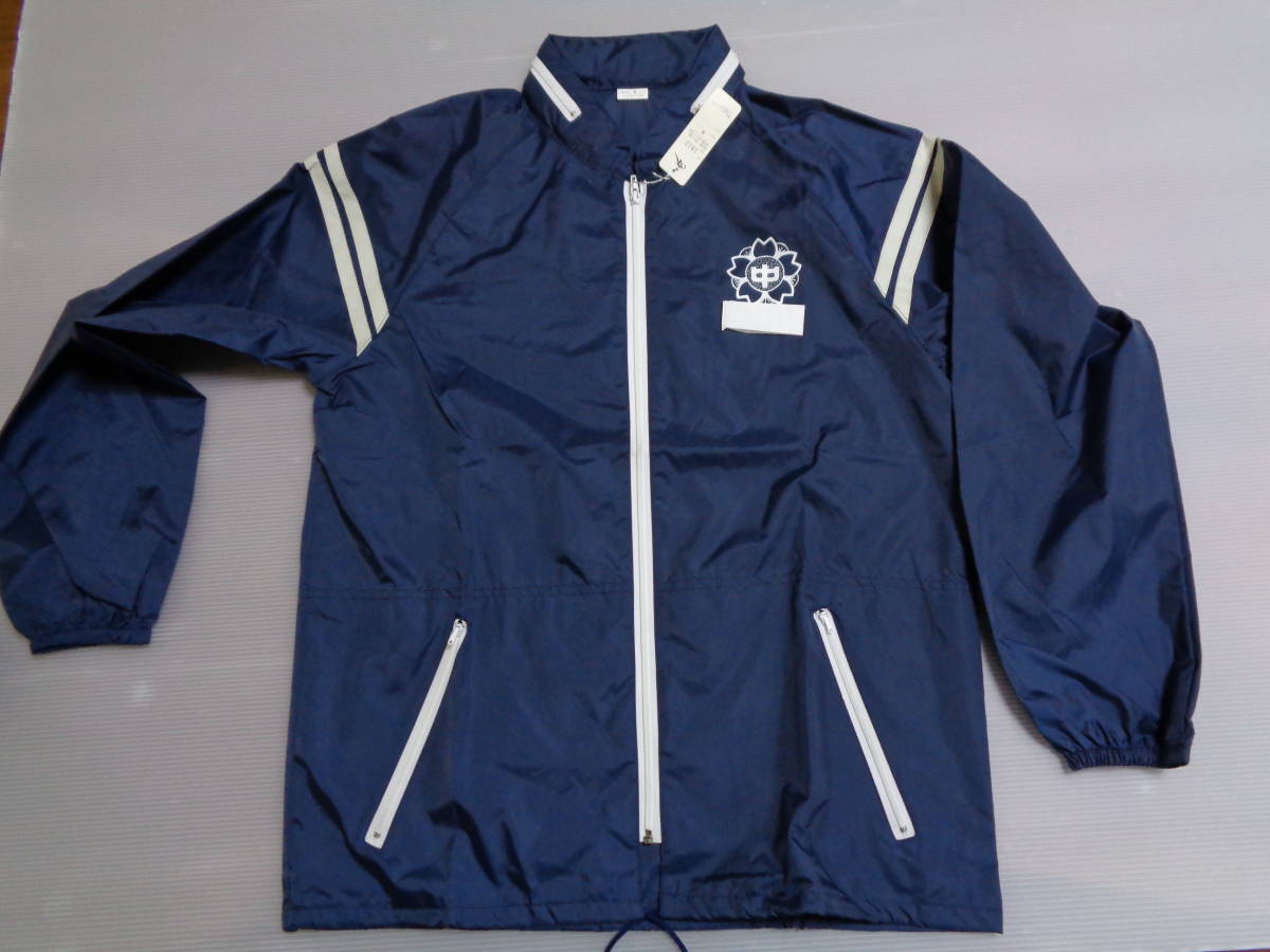 - S 紺×白 中学校 通学用 ナイロン100% ジャンパー ヤッケ ウィンドブレーカー 上着 昭和レトロ 未使用