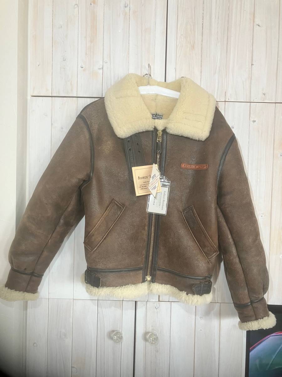 - 送料込 AVIREX アヴィレックス B-3 サイズ36 USED 胸タグ 茶色 ムートン フライトジャケット ギャランティーカード 送料無料