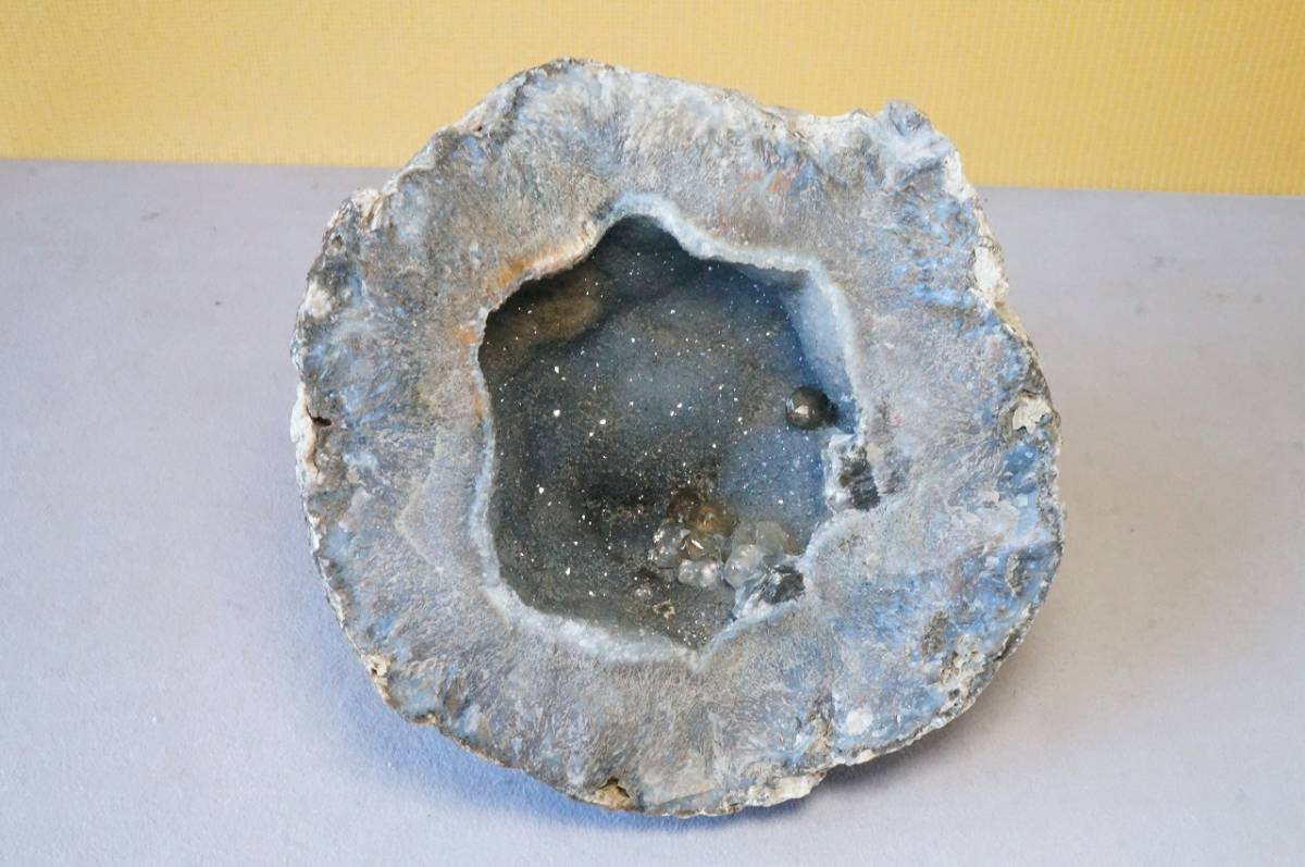 - 早い者勝ち!30年前の希少在庫!ジオード・ドーム水晶、石英クラスター、カルサイトが神秘的卵型原石1.7Kg