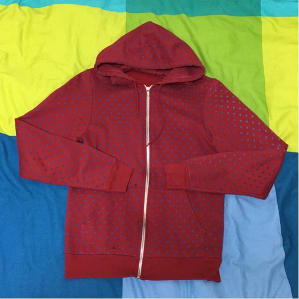 - American Apparel アメリカンアパレル ドット柄ジップアップパーカーXS レッド 赤 RED アメアパ