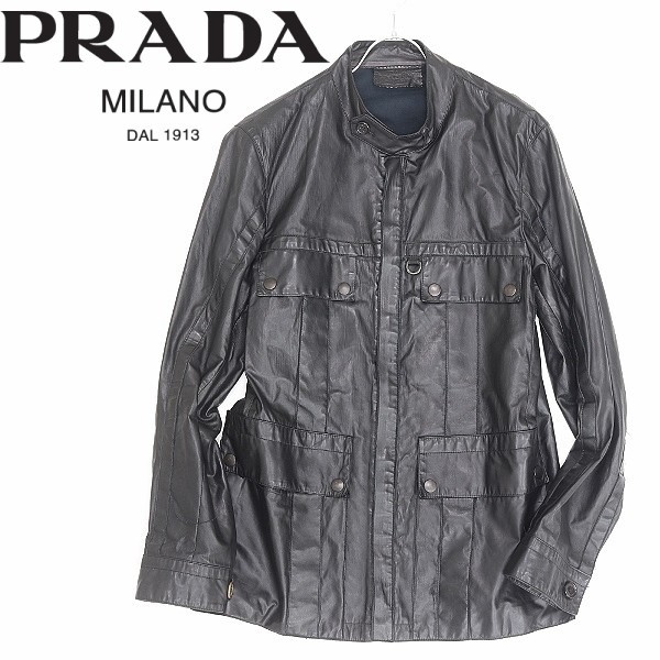 - 国内正規品●PRADA プラダ ラムレザー サファリ コート ジャケット 黒 ブラック 46