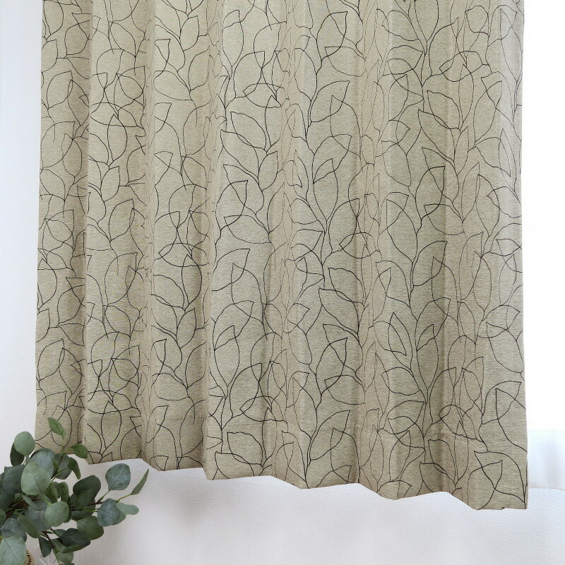 - 遮光カーテン 北欧 リーフ柄 ブラウン 幅125cm×丈200cm2枚 日本製 プリーツが綺麗な形態安定加工