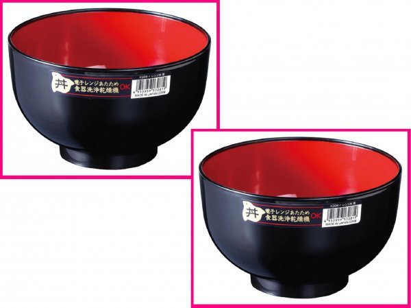 > 【送料無料:どんぶり:2個:日本製】★レンジ丼 「黒系:内朱色」:2客★16cm:電子レンジ 食器洗浄乾燥機 対応:No23c:0819:D 漆器 お椀