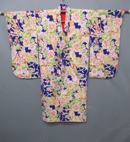 - 【政】32177 錦紗ちりめん子供着物 花 縮緬 錦紗 古着