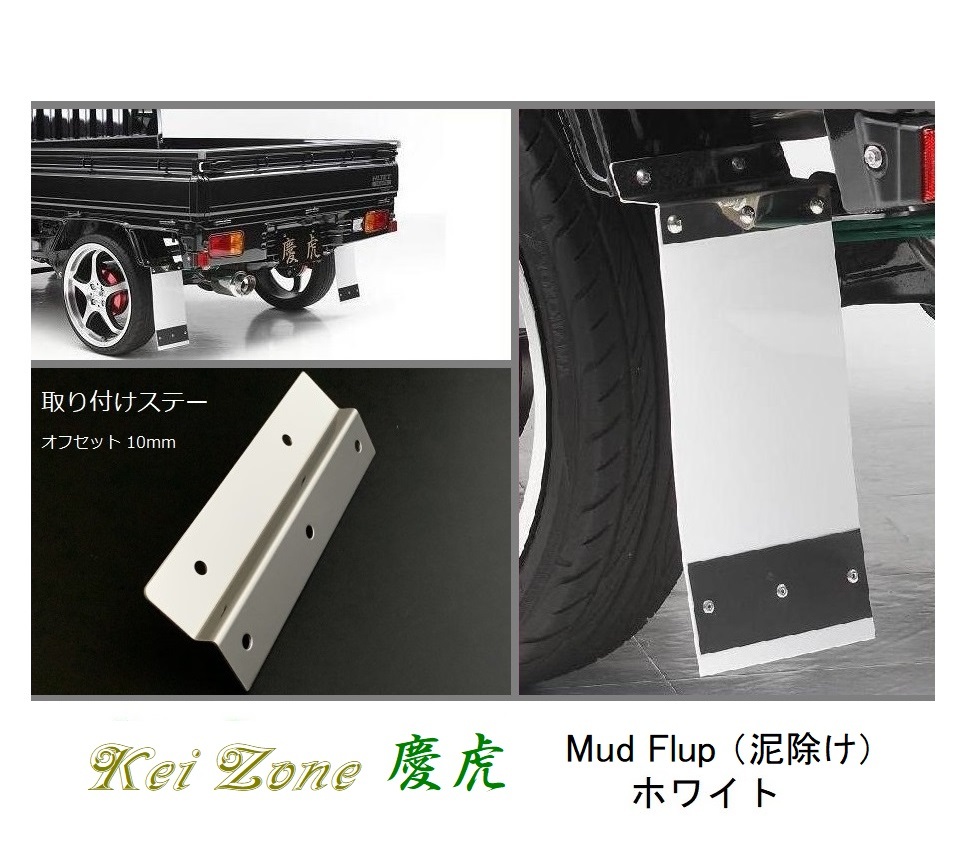 > ☆Kei Zone 軽トラ NT100クリッパートラック DR16T 慶虎 Mud Flap 泥除け(ホワイト) 鏡面ステー付き