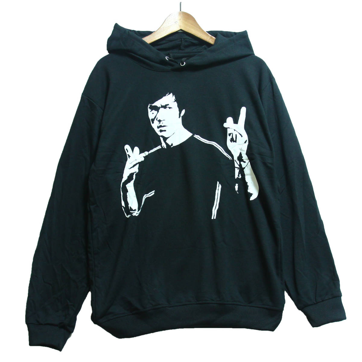 > プルオーバーパーカー ブルースリー 李小龍 格闘技 映画パーカー ストリート系 スウェット フード付き 薄手 春秋物 ★pk0043-blk-xl