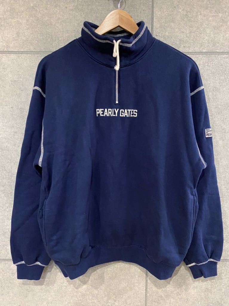 - 普段使いにも! 日本製 PEARLY GATES パーリーゲイツ ハーフジップ スウェット トレーナー 刺繍 ネイビー Sサイズ メンズ ○ 新規×
