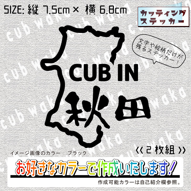 - 都道府県・秋田県ステッカー2枚組 文字絵柄だけ残るカッティングステッカー・CUB・カブ・リトル・ハンター・クロス・プレス