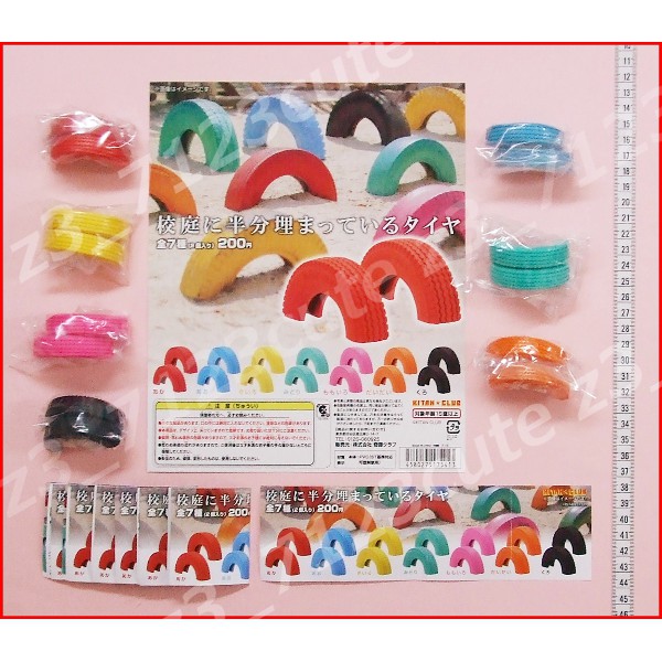 - ★ガチャポン校庭に半分埋まっているタイヤ全7種★ミニチュア