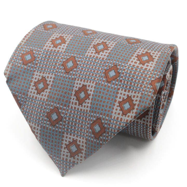 > イヴサンローラン 総柄 スクエア 格子 高級 シルク ブランド ネクタイ メンズ ブラウン 良品 Yves Saint Laurent YSL