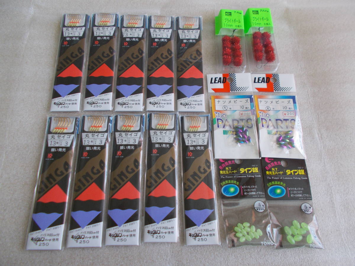 - 銀河 金丸セイゴ 丸セイゴ 13号 針 ブライトボール ナツメビーズ 発光玉ハード まとめて 未使用