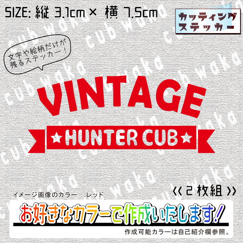 > ビンテージ①HUNTERCUBステッカー2枚組 文字絵柄だけ残るカッティングステッカー・ハンターカブ・リアボックス・サイドカバー