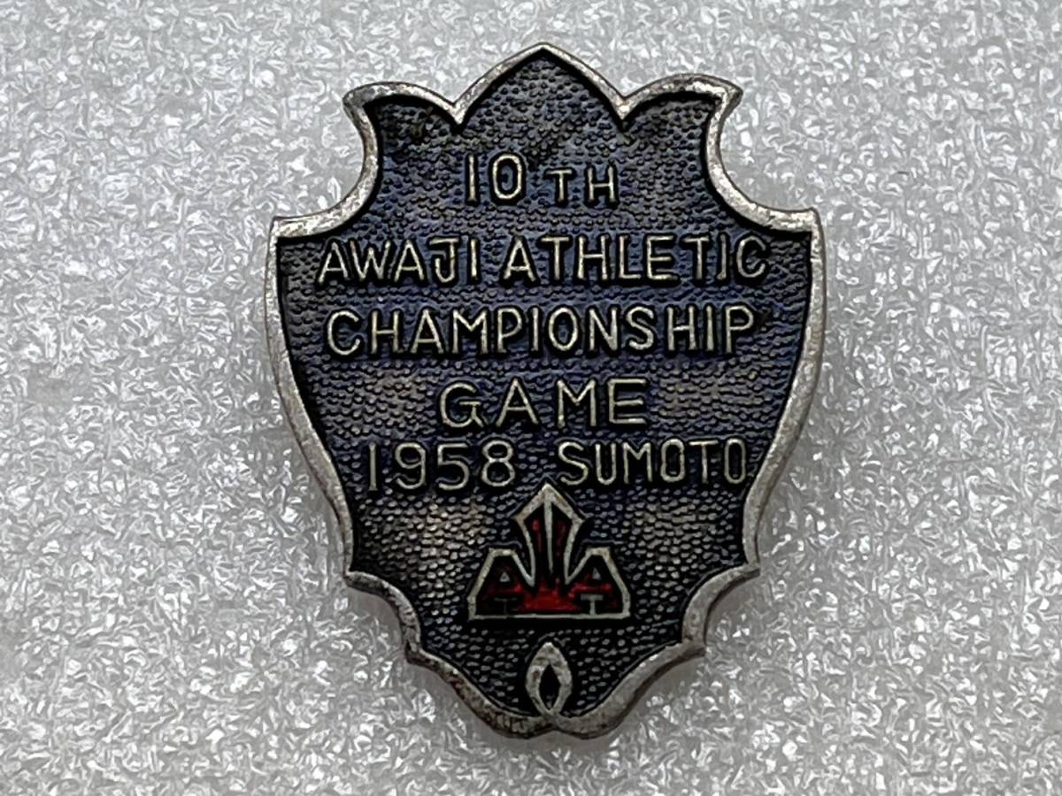> ・ 雑貨★SPB41 10TH AWAJI ATHLETIC CHAMPIONSHIP GAME 1958 SUMOTO ピンバッジ 昭和 レトロ ピンズ ビンテージ 陸上 ピンバッヂ