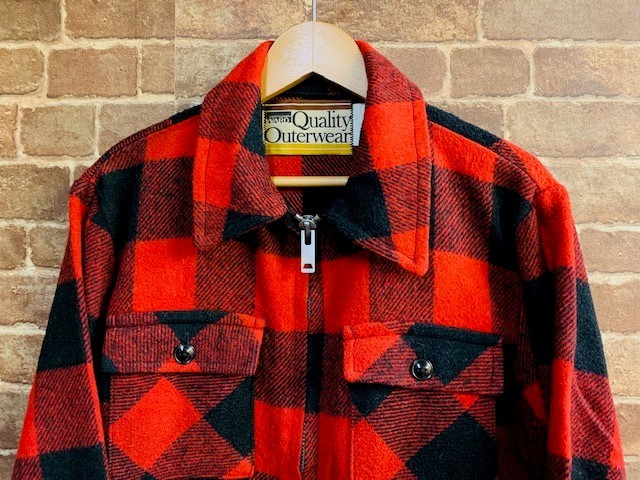 > ★表記S/実寸M!80'sヴィンテージモンゴメリーワードブロックチェックウールコートジャケット.Vintage.古着ルード系ロックバイカーラギッド