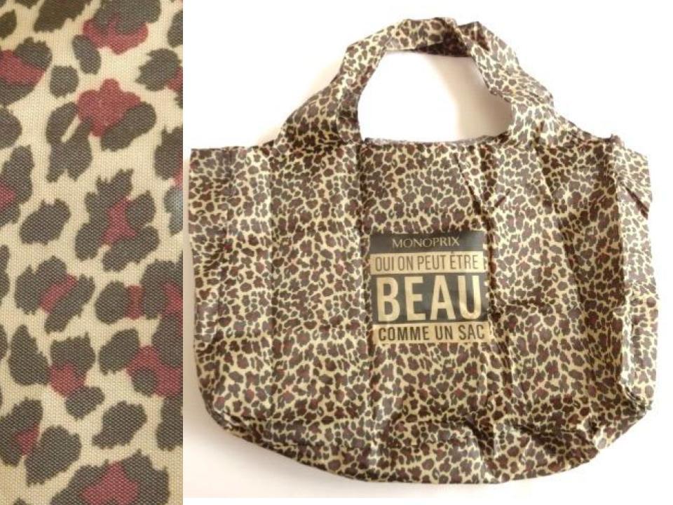 > ● 日本未発売 MONOPRIX モノプリ フランス エコバッグ 新品 ヒョウ柄 小柄 レオパード ベージュ ブラウン コンパクト 折畳 携帯収納 軽量