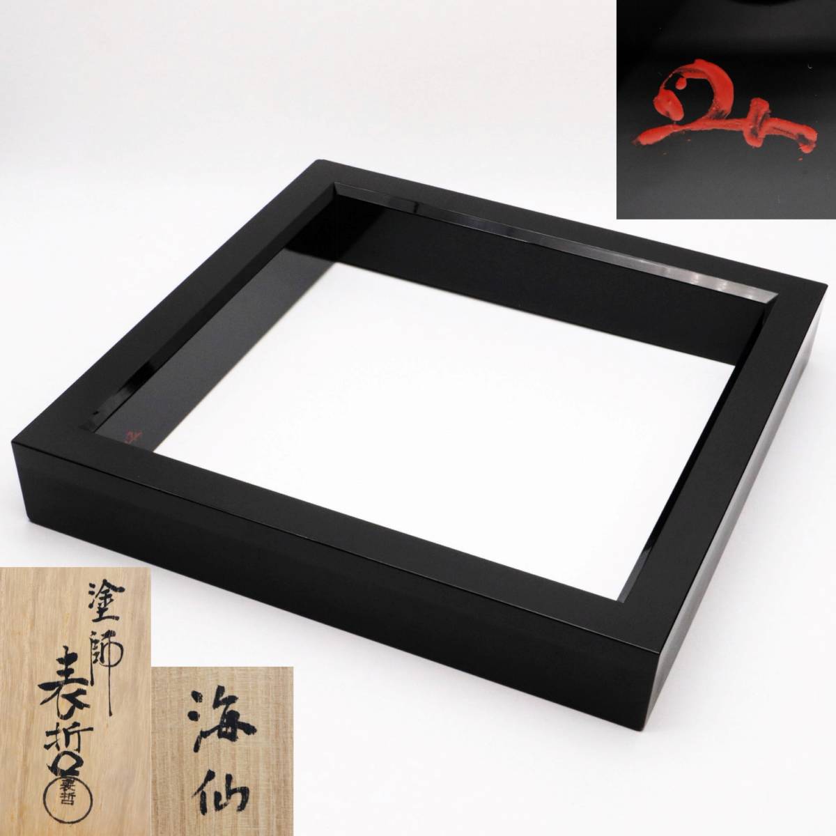 - ◆◇塗師 表哲 真塗 黒炉縁 井口海仙 花押■共箱 茶道具 炉縁 塗縁◇◆