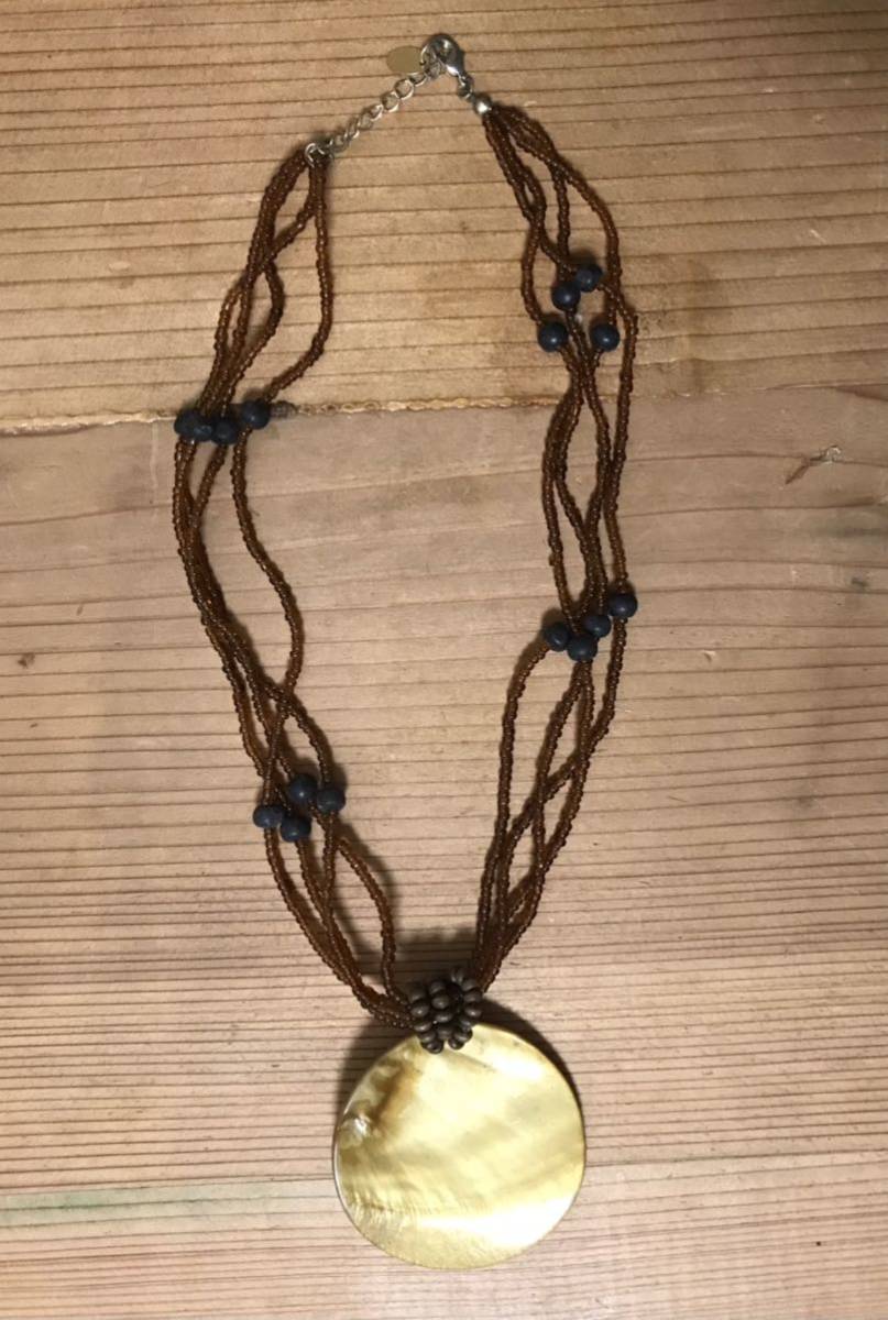 - クレアーズ★ネックレス★ペンダント★ブラウンビーズ★約43cmアジャスター約5cm