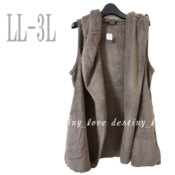 - ●フリースベスト/モカ系/LLー3L/フード付/レディース●あ1095