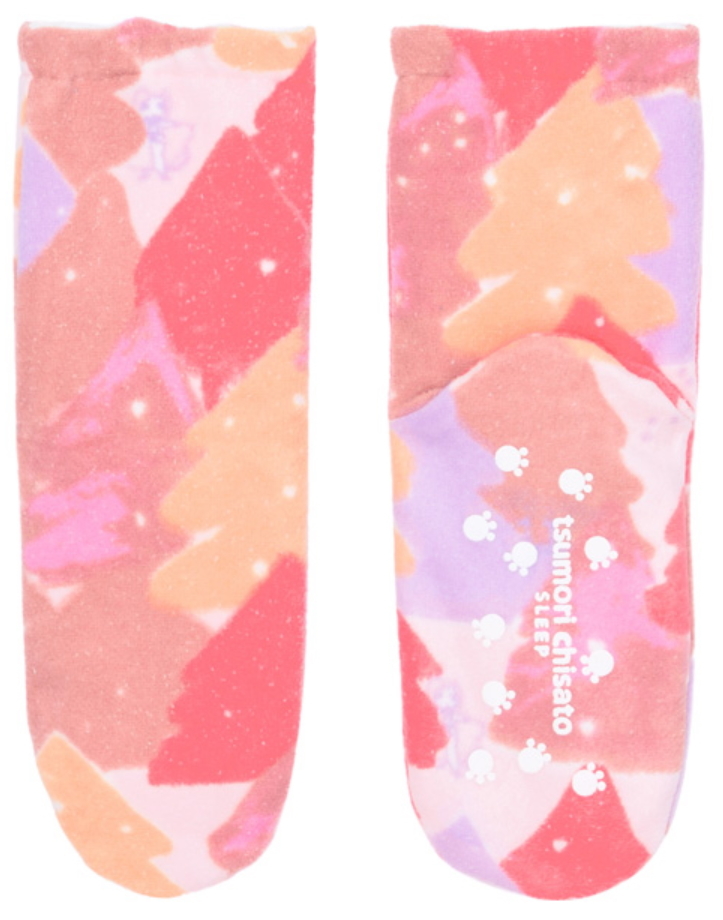 - ツモリチサト★ワコール★ルームシューズ/靴下★M(22~24cm)★フリース 素材★雪山の森~ネコズキン物語★オレンジxピンク/PI