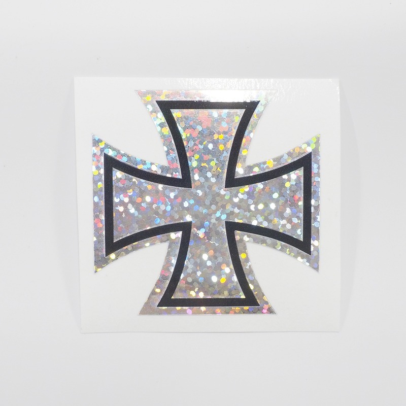 - (ドットホログラム) アイアンクロス ステッカー シルバー シール 十字架 5cm ワンポイント 防水 UVカット加工 デカール シール