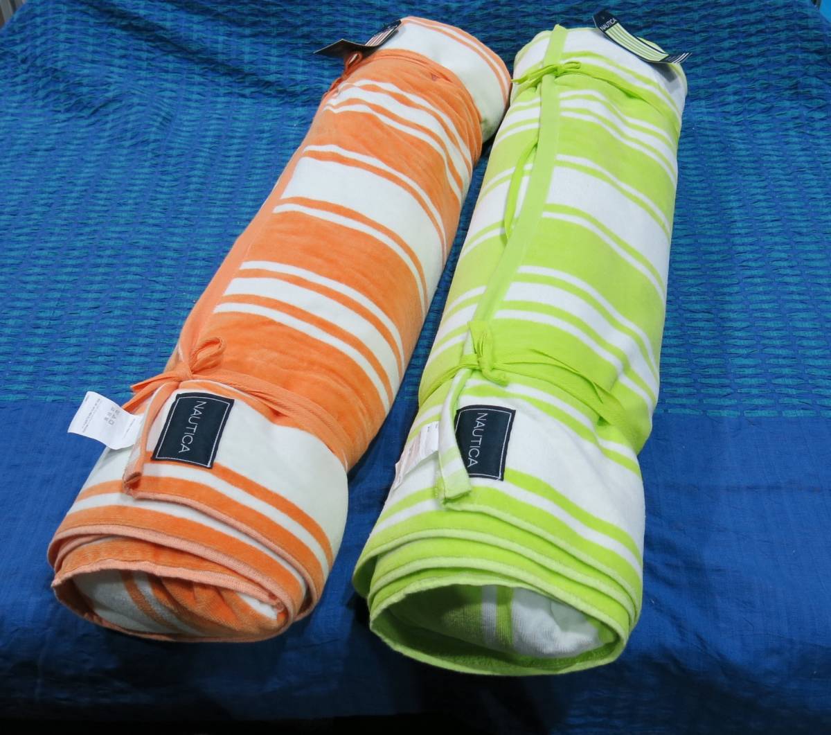 > 未使用品 展示品 緑 オレンジ セット NAUTICA ノーティカ ビーチタオル Beach Towel with Bolster Pillow 32''×70'' 81cm x 178cm 綿100%