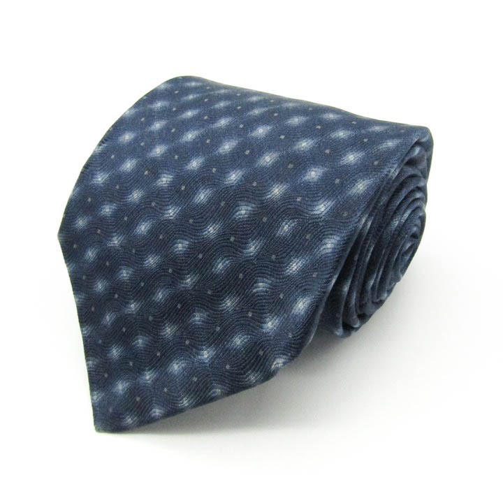 - クレージュ 総柄 ウェーブ 高級 シルク イタリア製 ブランド ネクタイ メンズ ネイビー 良品courreges