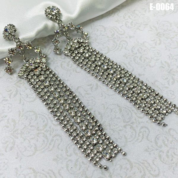 - 送料無料!! ゆらゆら 輝く ロング イヤリング キラキラストーン アクセサリー ブライダル ウェディング パーティー 結婚式 ◇E-0064