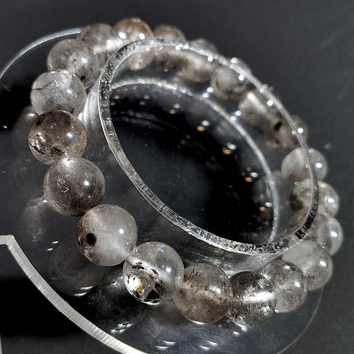 > ハーキマーダイヤモンド 丸玉 ブレスレット 9.5mm 16cm ダイアモンド アイリスクォーツ 骸骨水晶 エレスチャルクォーツ