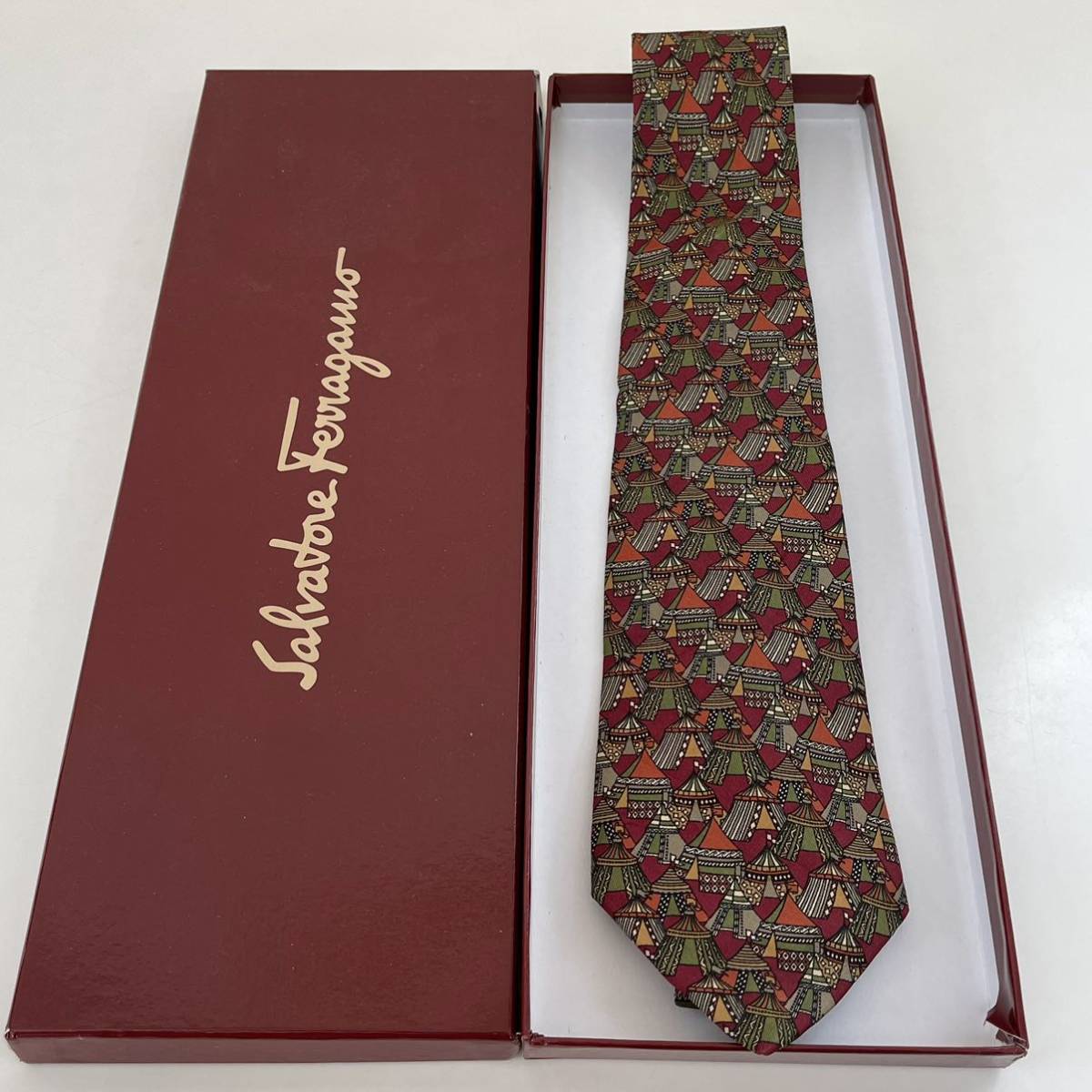 - Salvatore Ferragamo(サルヴァトーレフェラガモ) 赤テント柄ネクタイ