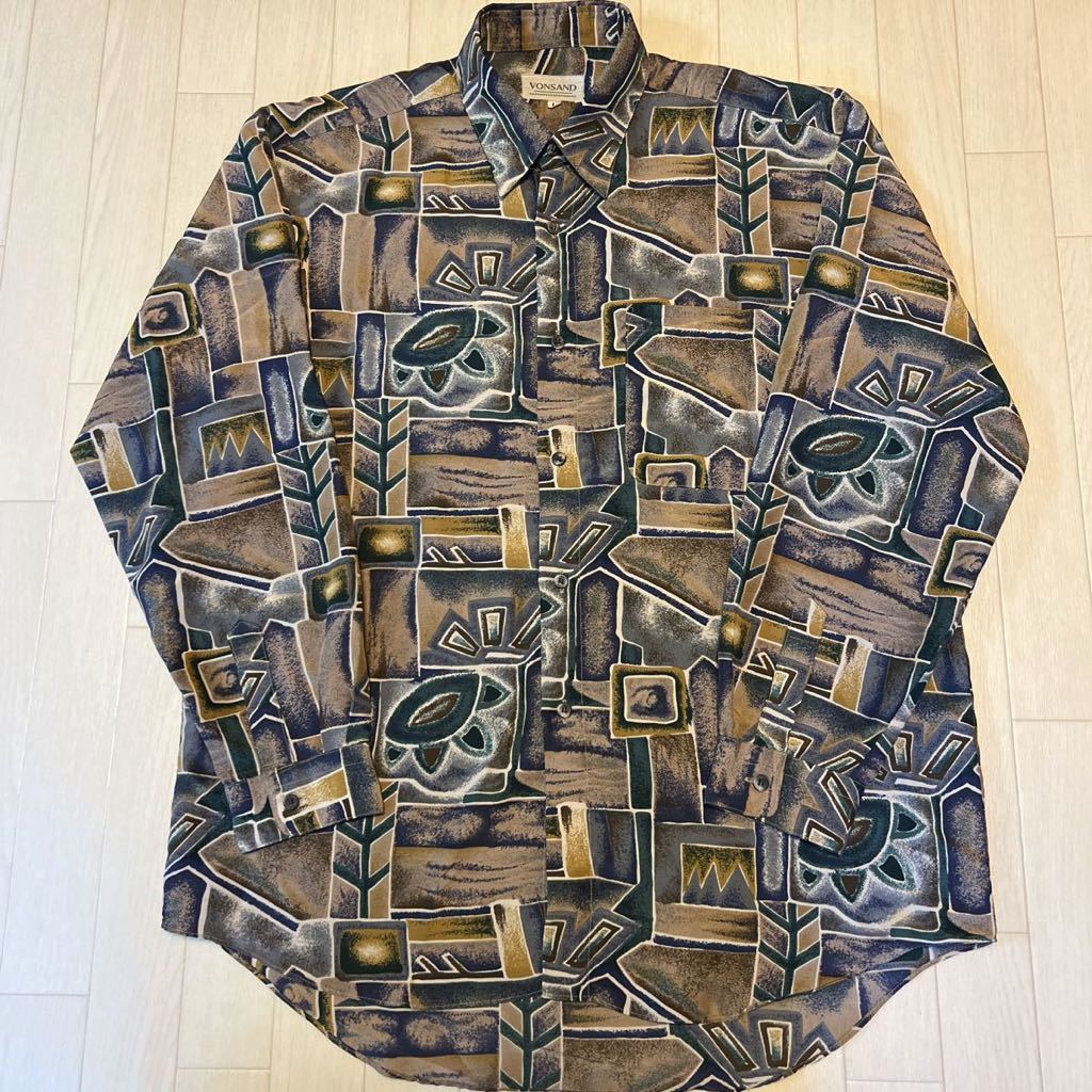 - VONSAND 総柄 柄シャツ レトロ アート ビンテージ 長袖シャツ ポリエステル