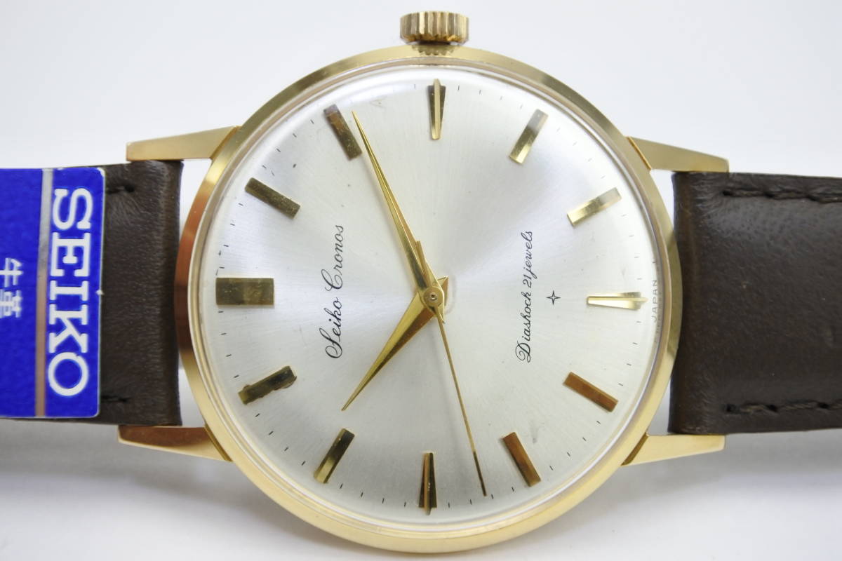 > 時司神「クロノス」*1960年代名機 SEIKO Cronos 21石 Diashock(耐震機構)手巻紳士腕時計 純正ベルト 高級品 未使用保管品