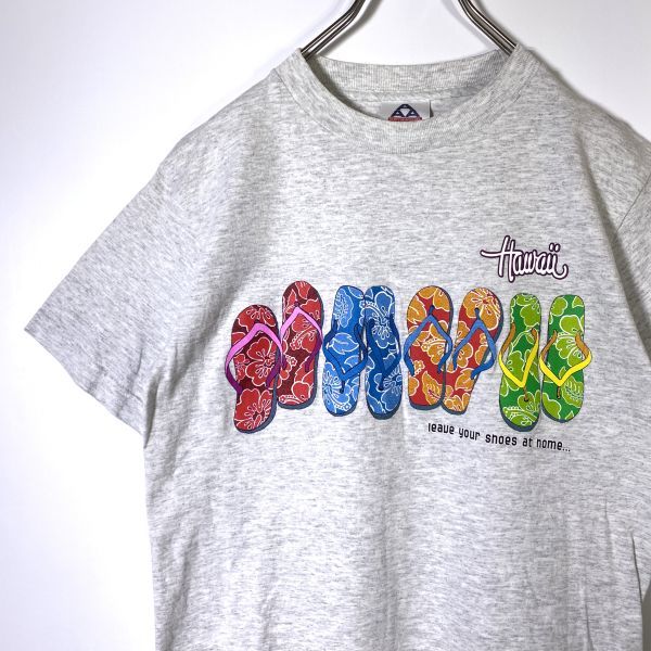 > ビンテージ 半袖Tシャツシャツ メンズ ハワイ コットン クルーネック ビーチサンダル 霜降りグレー Sサイズ USA製