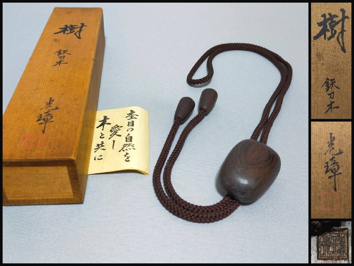 - FA16 木製 ループタイ 神宮大宮司 木彫工芸家 村上光璋 作「樹」 鉄刀木 栞・共箱 小物 アクセサリー